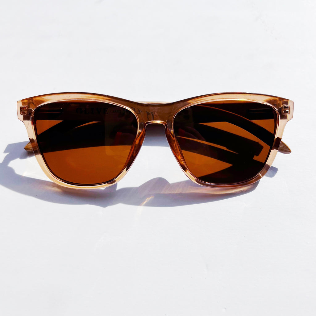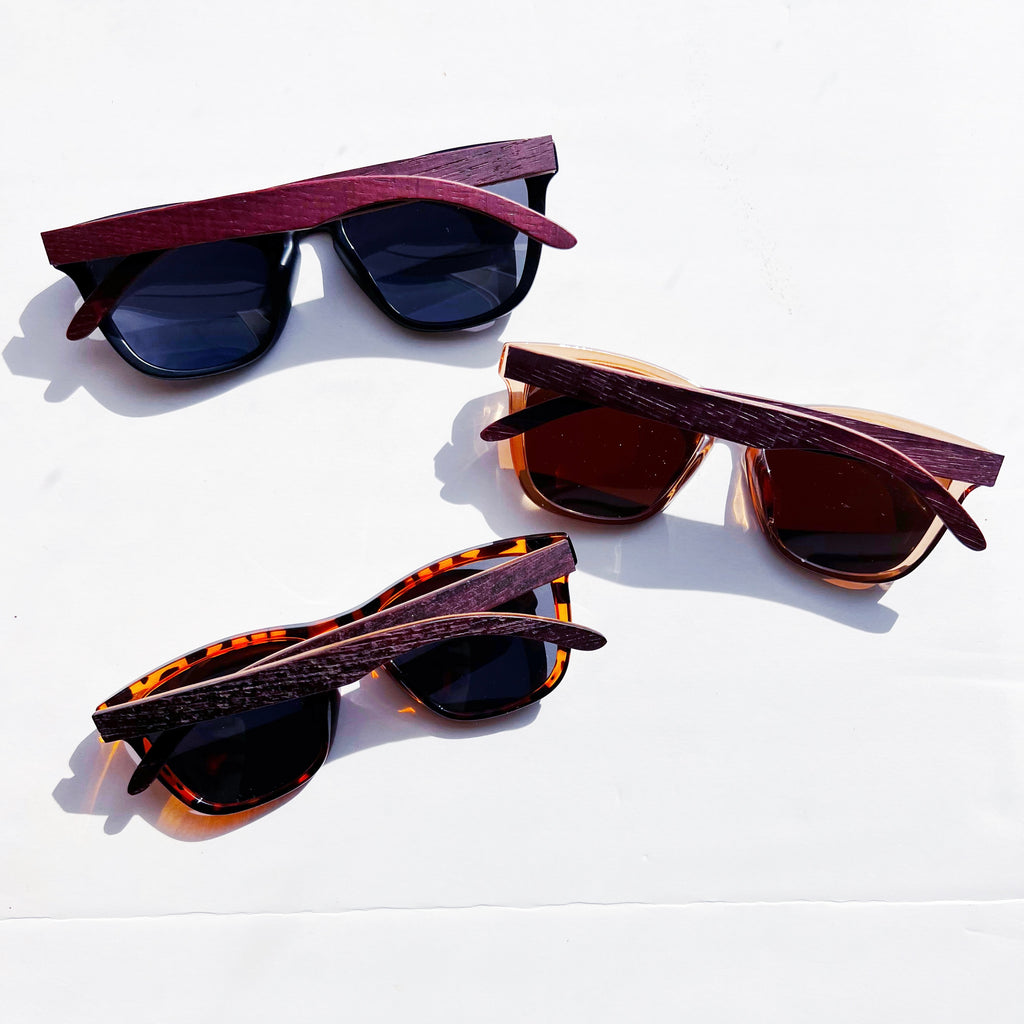 With arms made from three layers of reclaimed wine barrel wood, these polarized sunnies are unique in every way. Streaks of red wine stain are still visible in pieces of the wood. Take them to the beach, or sip your rosé poolside with a little wine country flare.