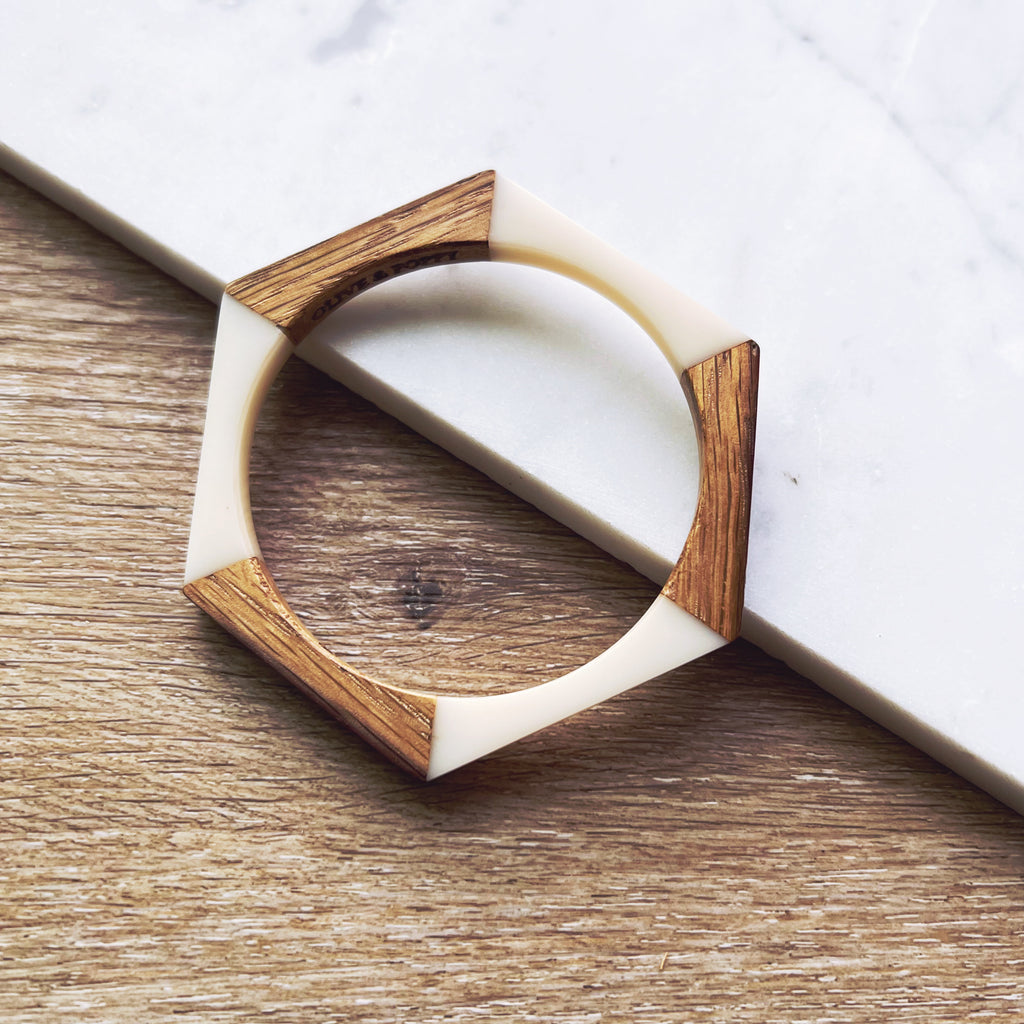 Choose your own colorful stack of these gorgeous Barrel Bracelets! Start with your base of a 1/2" bracelet in either Milk White, Onyx Black or Translucent. Then, add two fun colors with 1/4" bracelets in a rainbow of choices! We'll include a description of what these one-of-a-kind bracelets are made from and package them in a gift-ready box with a note from you!
