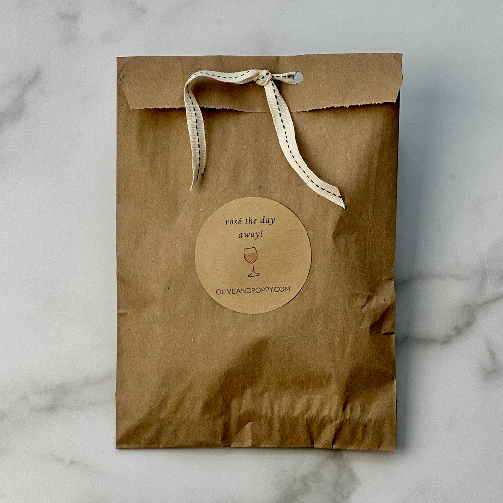 Rosé is a state of mind: it's celebratory, fun-loving and the life of the party! If you've got a rosé lover in your life, or if you are a fellow rosé lover yourself, this is the ultimate gift set. Comes ready to gift in a kraft pouch with ribbon and a cute sticker that reads "rosé the day away."