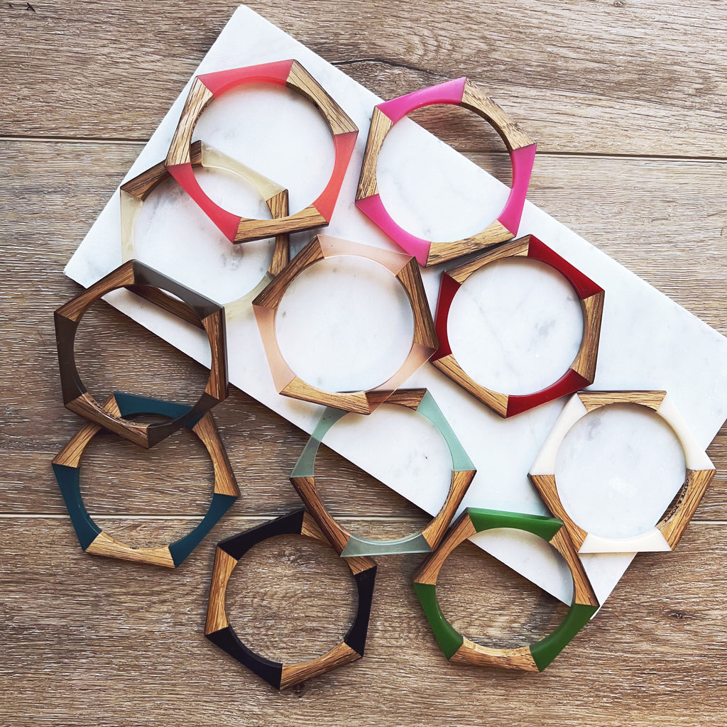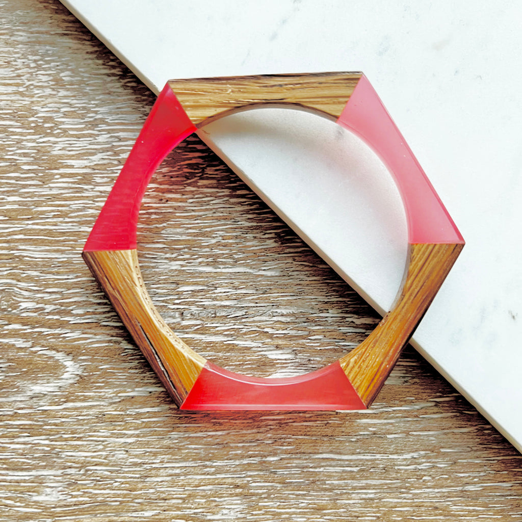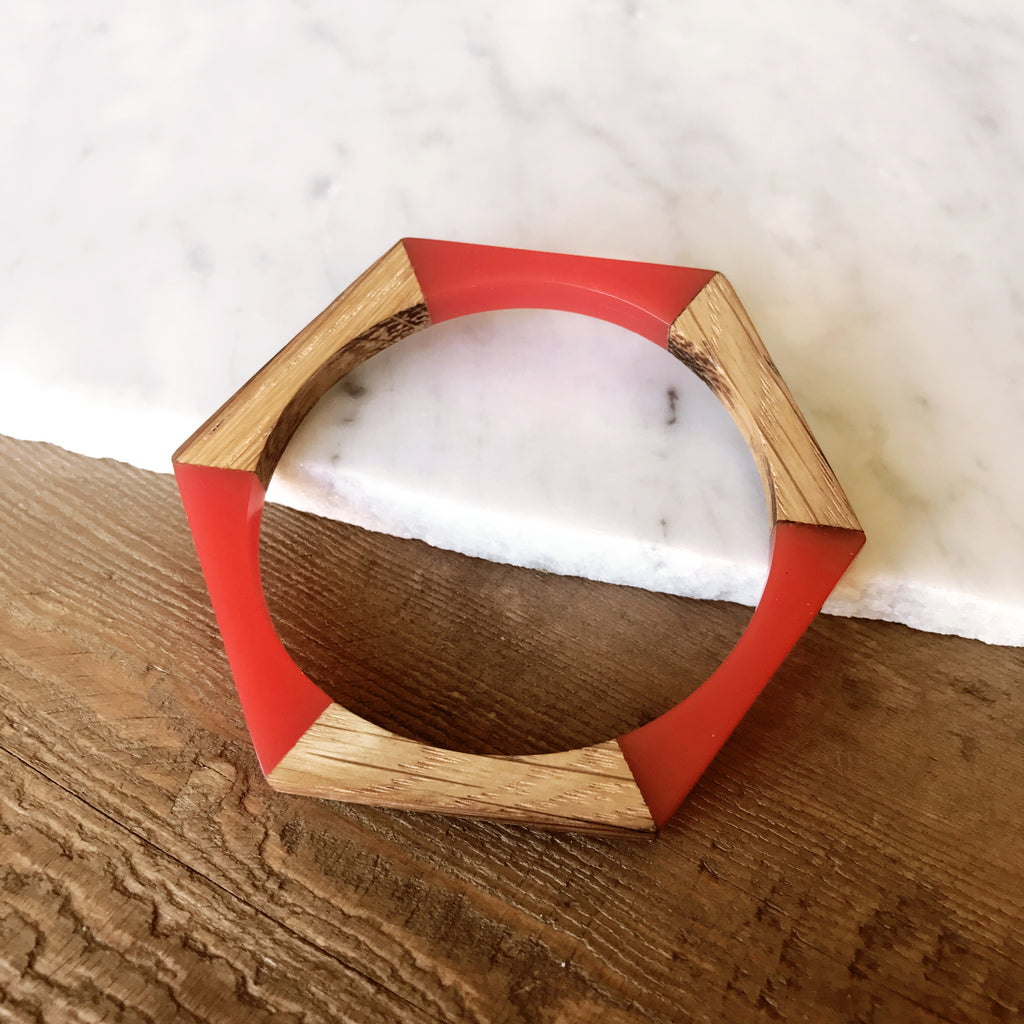 The thinnest version of our best-selling Barrel Bracelet makes it easy to stack four or five of these gorgeous bracelets to create your own stylish color palate! Made from alternating segments of reclaimed wine barrel wood and colorful lucite, the red wine stain is still visible on parts of the wood.